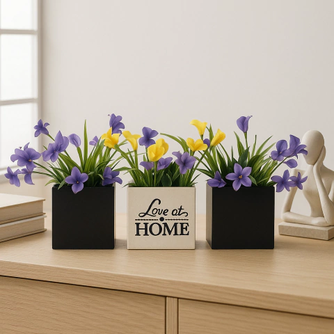 Cachepô Vaso Decorativo Branco Planta Artificial Kit c 3