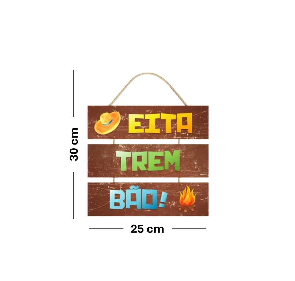 A placa decorativa “Eita Trem Bão!” é o toque especial que faltava para sua Festa Junina ou Julina ficar ainda mais divertida, aconchegante e cheia de charme. Ideal para quem ama reunir amigos e família, montar uma festa caipira e espalhar sorrisos!