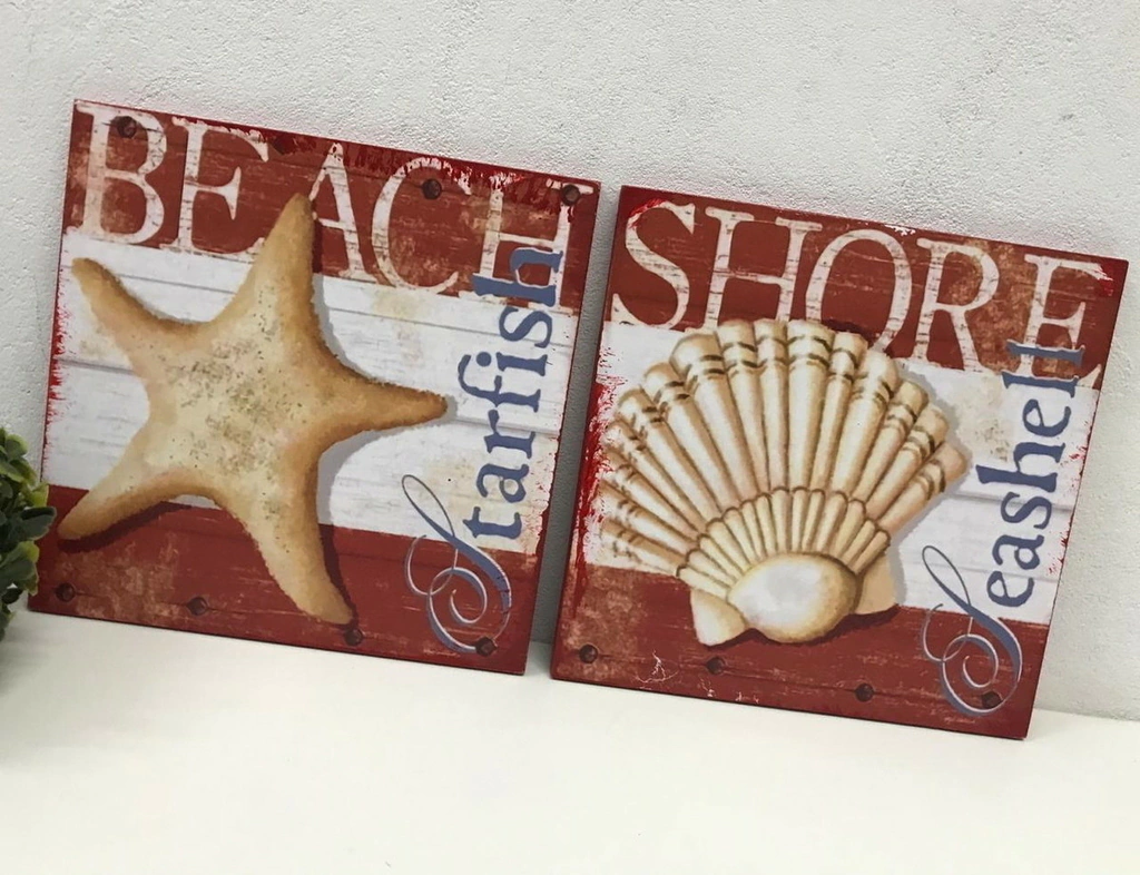 Kit 2 Quadros Decorativos Placas Praia Mar.