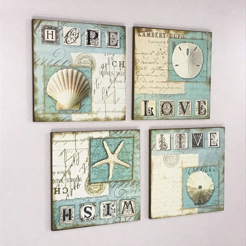 Kit 4 Quadros Decorativos Placas Praia Mar Love