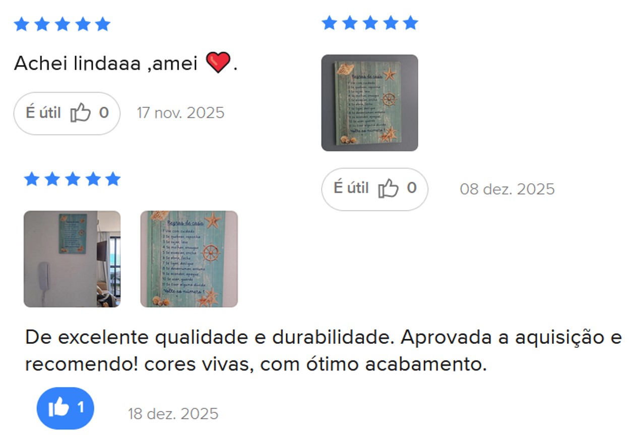 Ø Decoração exclusiva: Temos muitas placas com arte exclusiva para serem usadas na decoração, adicionando um toque de individualidade e charme praiano ao seu espaço.